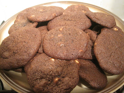 Recipe from http://www.nigella.com/recipes/view/lush-squidgy-double-chocolate-cookies-780